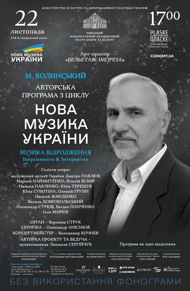 Концерт, з циклу “Нова музика України”, відбудеться 22 листопада в Одеській опері
