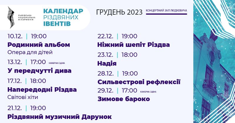 Деталі програми: https://philharmonia.lviv.ua/event/rizdvianyj-muzychnyj-darunok/