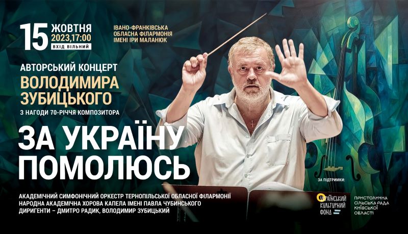 За підтримки Українського культурного фонду та Пристоличної сільської ради Київської області в жовтні 2023 року проєкт ««За Україну помолюсь» Цикл концертів з нагоди 70-річчя композитора Володимира Зубицького» уже здійснено в містах Одеса та Тернопіль. Нині цю програму презентують в Івано-Франківську.