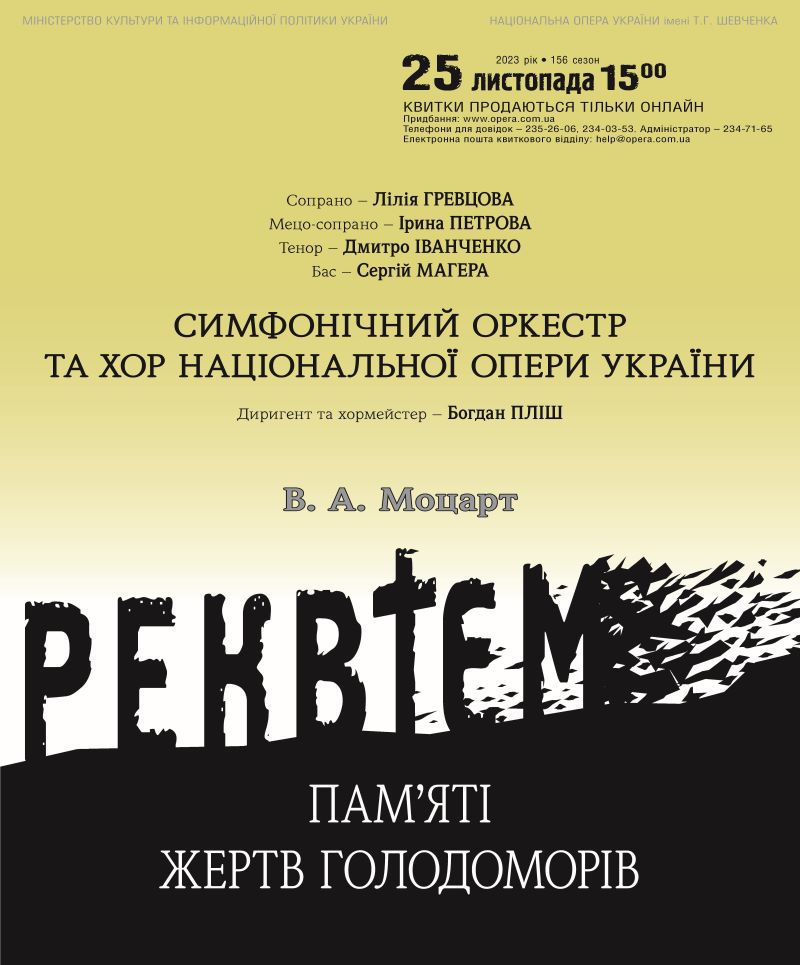 25 листопада у День пам'яті жертв Голодомору та політичних репресій у Національній опері лунатиме “Реквієм” Моцарта