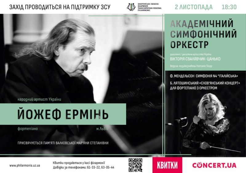 Відчути, як ваше серце наповнюється спокоєм та любов’ю під звуки симфонічного оркестру та фантастичних композиції Ф. Мендельсона Симфонія №4 «Італійська» та Б. Лятошинського «Слов’янський концерт» запрошують піаніст, маестро сцени Йожеф Ермінь та Академічний симфонічний оркестр Закарпатської філармонії під керівництвом заслуженої артистки України Вікторії Свалявчик-Цанько.
