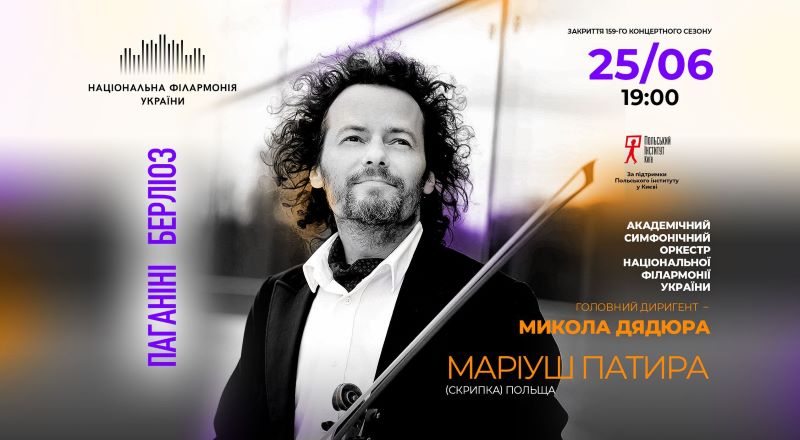 Академічний симфонічний оркестр Національної філармонії України, під орудою головного диригента Миколи Дядюри запрошують на програму де звучатимуть твори Паганіні і Берліоза. Соліст -відомий скрипаль Маріуш Патира (Польща).