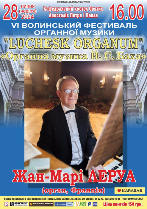У концертній програмі «Органна музика Й. С. Баха» звучатимуть твори німецького генія у виконанні патріота і друга України, композитора і диригента, головного органіста церкви Нотр-Дам де Назарет Жана Марі Леруа.