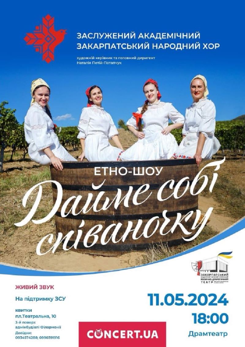 "Дайме собі співаночку" - програму з такою назвою представить своїм шанувальникам колектив зі сцени Закарпатського академічного музично- драматичного театру імені братів Шерегіїв 11 травня.