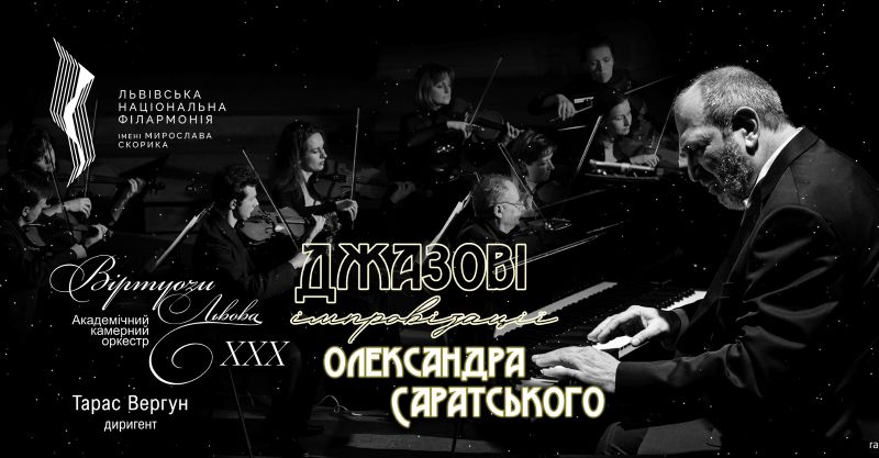 6 березня о 19:00 Львівська національна філармонія імені Мирослава Скорика запрошує на вечір джазу від українського імпровізатора, виконавця та композитора – Олександра Саратського та Академічного камерного оркестру «Віртуозів Львова».