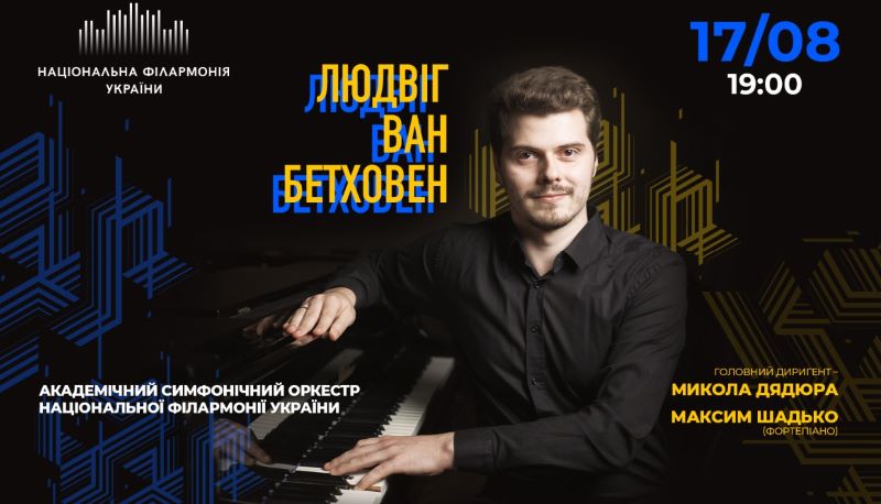 Академічний симфонічний оркестр Національної філармонії України під орудою головного диригента Миколи Дядюри та соліст Максим Шадько виконають Бетховена. Третій бетховенський фортепіанний концерт піаніст-віртуоз Максим Шадько уперше зіграє у Колонному залі в якості соліста Національної філармонії.