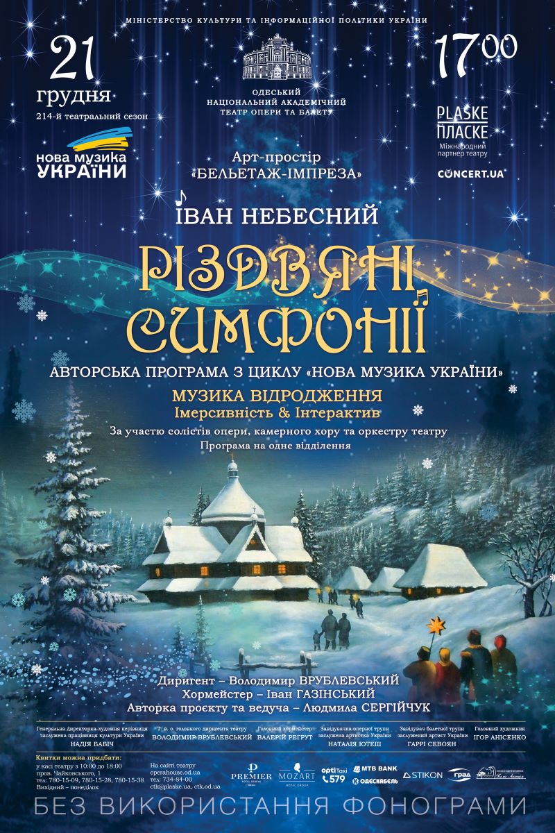 Неймовірна атмосфера очікування свят, незабутні почуття від такої знайомої та улюбленої з дитинства музики Різдва, занурення у чарівний світ музичних образів композитора Івана Небесного – все це чекає на слухачів у новій програмі «РІЗДВЯНІ СИМФОНІЇ» в рамках проєкту «Нова Музика України».