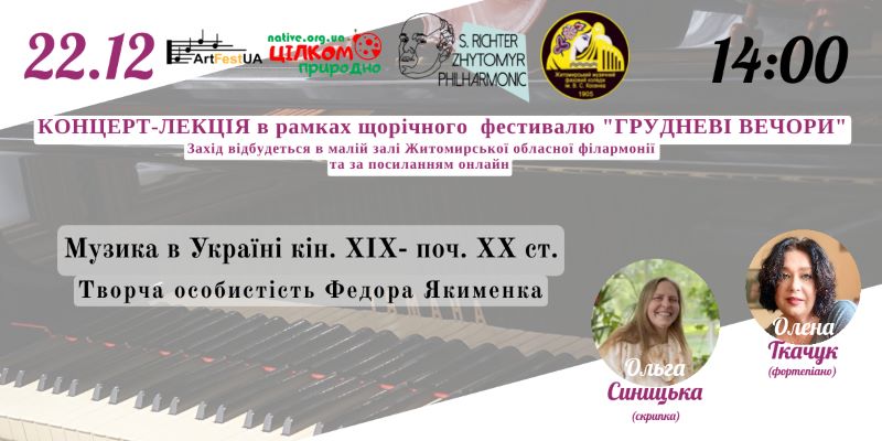 КОНЦЕРТ-ЛЕКЦІЯ в рамках щорічного фестивалю "ГРУДНЕВІ ВЕЧОРИ" в м. Житомирі