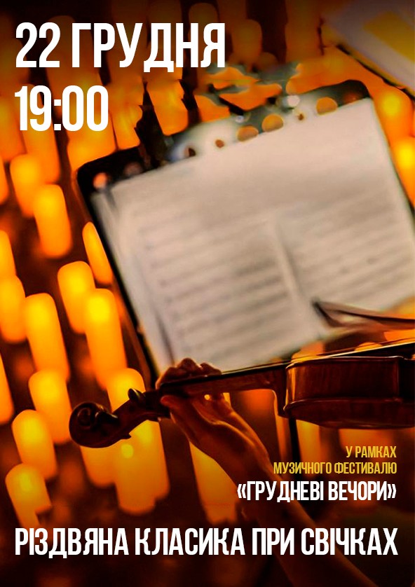 22 грудня о 19:00 запрошуємо вас послухати різдвяну класику при свічках, зануритися у світ різдвяної магії та чарівних мелодій разом з учасниками колективу String quartet Black.