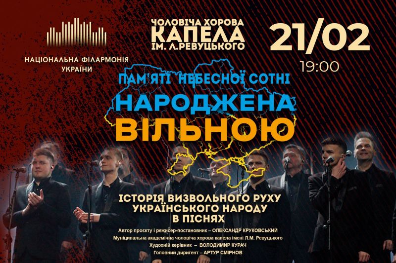 У програмі «Народжена вільною» ви почуєте пісні визвольного руху українського народу з XVI по XXI сторіччя.