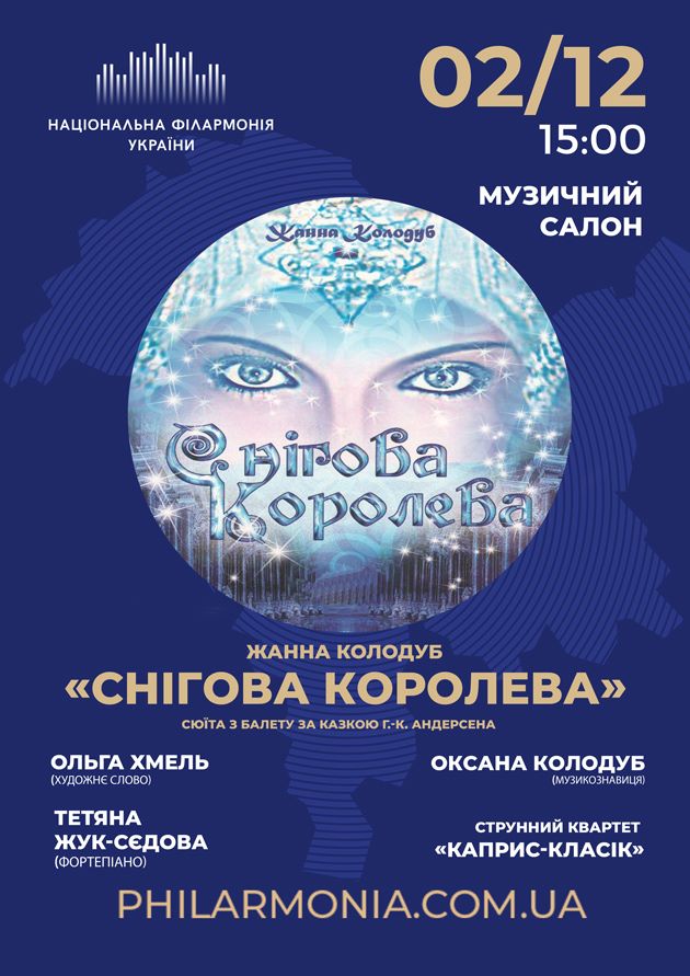 Сюїта з балету за казкою Г.-К. Андерсена «Снігова королева» української сучасної композиторки Жанни Колодуб прозвучить у виконанні Камерного струнного квартету «Каприс-Класік» і піаністки Тетяни Жук-Сєдової.