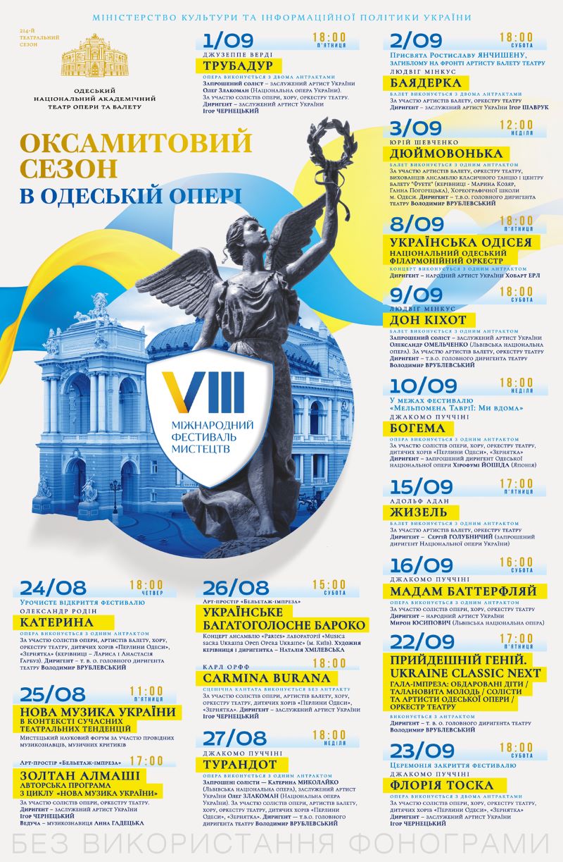“ Попри суворі виклики сьогодення; труднощі, що пов’язані з роботою театру в умовах воєнного часу, ми зберігаємо вірність традиції. Символічно, що фестиваль відкриється у День Незалежності України – 24 вересня”, - наголошують в Одеській опері.