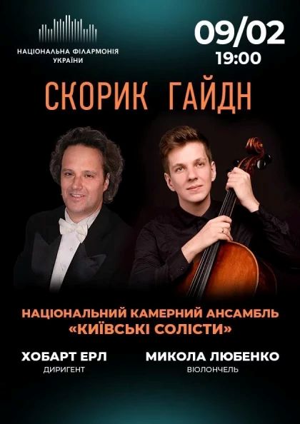 Концерт має назву - “Скорик. Гайдн”, яку презентують музиканти Національного камерного ансамблю «Київські солісти» під батутою відомого диригента Хобарта Ерла, соло - Микола Любенко віолончель.
