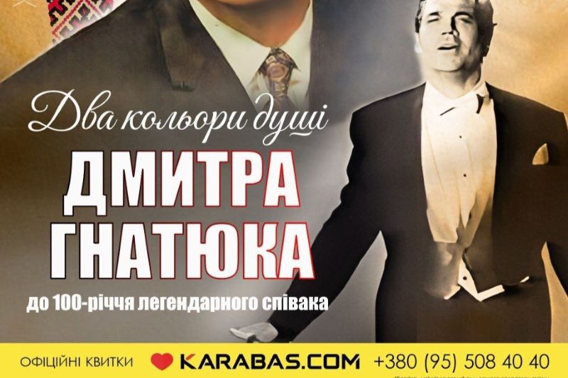 28 березня о 18:30 у Чернівецькій обласній філармонії імені Дмитра Гнатюка відбудеться унікальна концертна програма «Два кольори душі Дмитра Гнатюка», присвячена 100-річчю від дня народження видатного українського співака, режисера та громадського діяча.
