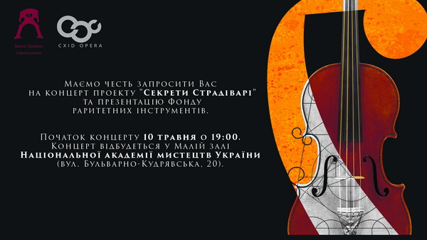 10 травня, 19:00 Презентація Фонду раритетних інструментів концерт «Секрети Страдіварі» в залі Національної академії мистецтв (вул. Бульварно-Кудрявська, 20)