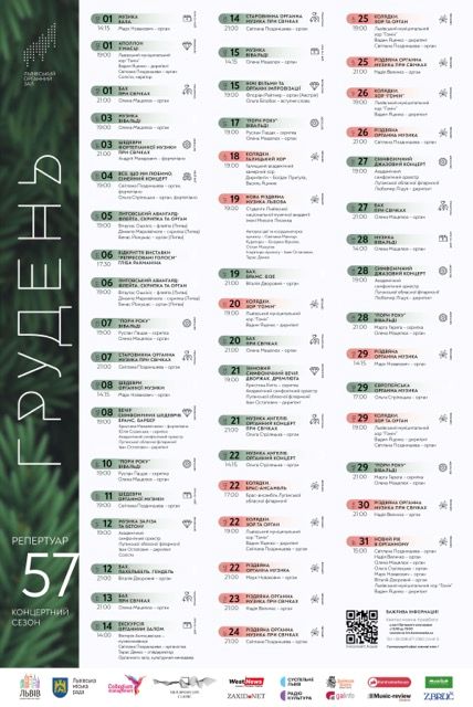 Грудень буде повний сюрпризів. Львівський органний зал пропонує унікальну можливість насолодитися більш ніж 50-ма концертами, серед яких кожен знайде щось для себе.