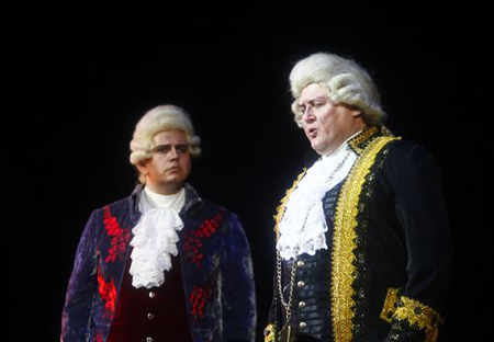 Прийнято вважати, що головний герой опери — саме Сальєрі, а не Моцарт, партію якого прекрасно виконав Валентин Дитюк. Молодий соліст Національної опери з унікальним тембром, зі зворушливою акторською привабливістю, воістину моцартівською безпосередністю зміг своїм виконанням вирівняти «позиції» персонажів, створивши достойну вокально-артистичну конкуренцію маститому ювіляру. Його Моцарт із тих небагатьох обраних, «єдиного прекрасного жерців», божественну природу творчості якого з фатальною заздрістю визнає ремісник від мистецтва.