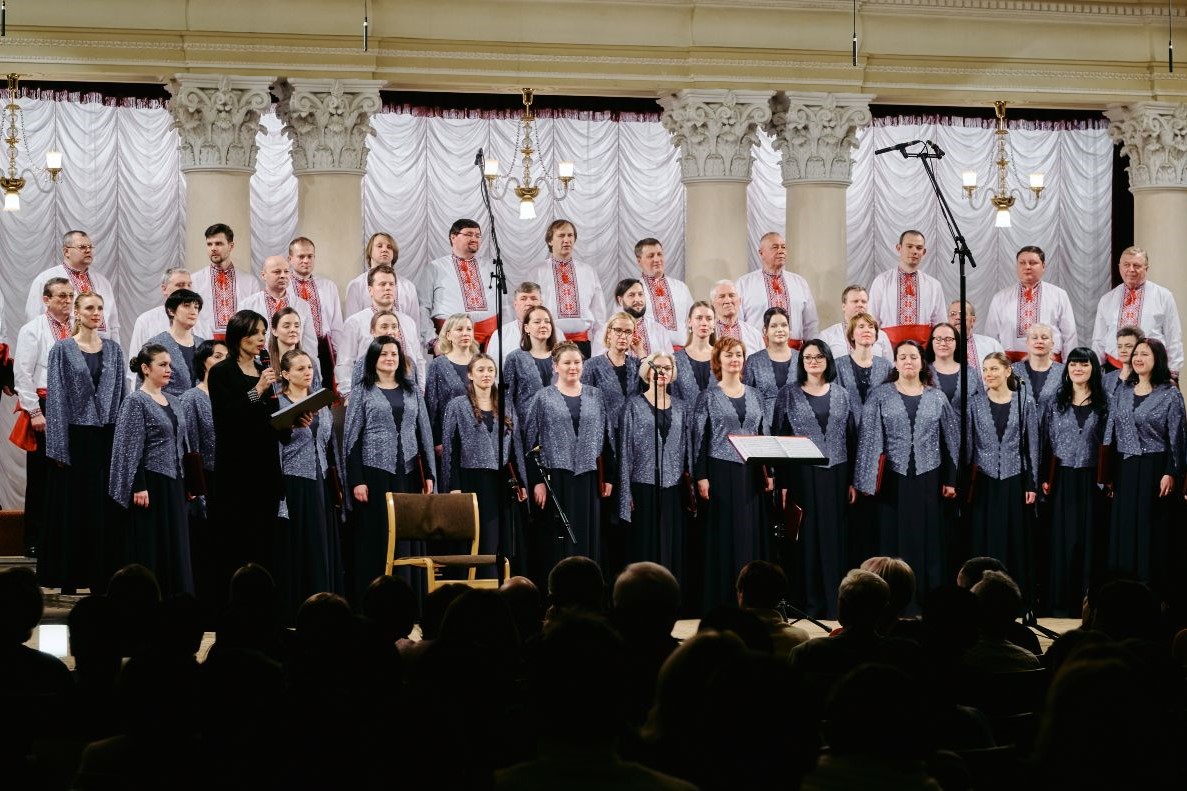 Концертну програму у колонній залі завершив Український Національний гімн "Вже воскресла Україна" в обробці Олександра Кошиця та знаменитим стрілецьким маршем" Ой у лузі червона калина", який в наші дні став символом українського спротиву російській агресії.
