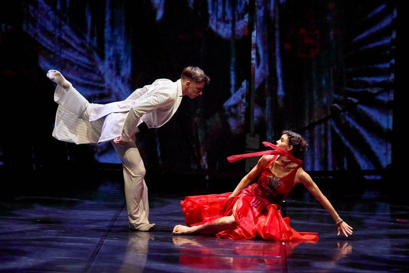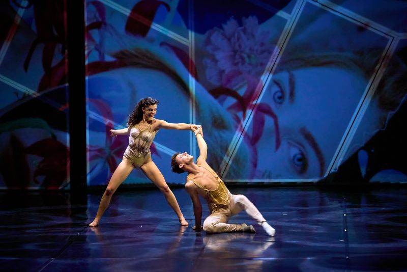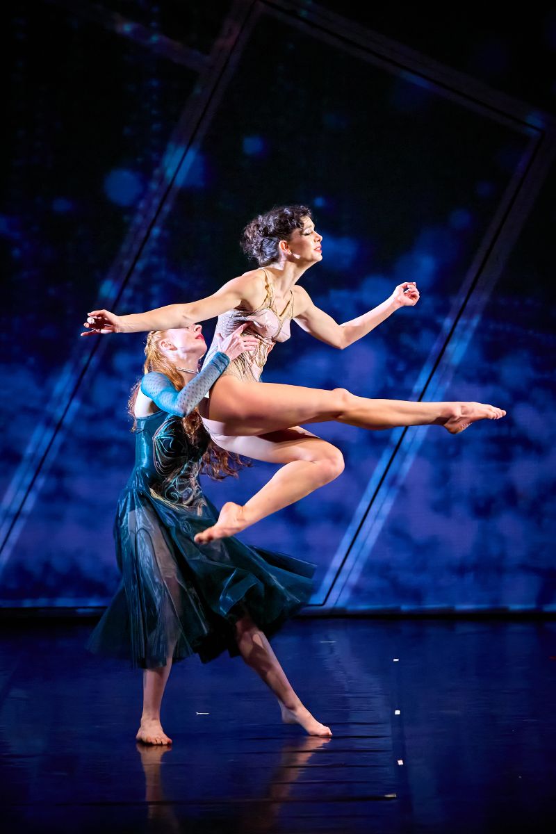 Відзначимо особливе сценографічне «прочитання» балету (відеоконтент, який представила Ольга Нікітіна) - загадкове дзеркало, наче задзеркаллям. Де відбувається одна дія на сцені, а у дзеркальному відображені щось інакше… Комп’ютерними засобами виразно спрацьовують рухливі фрески-панорами…
