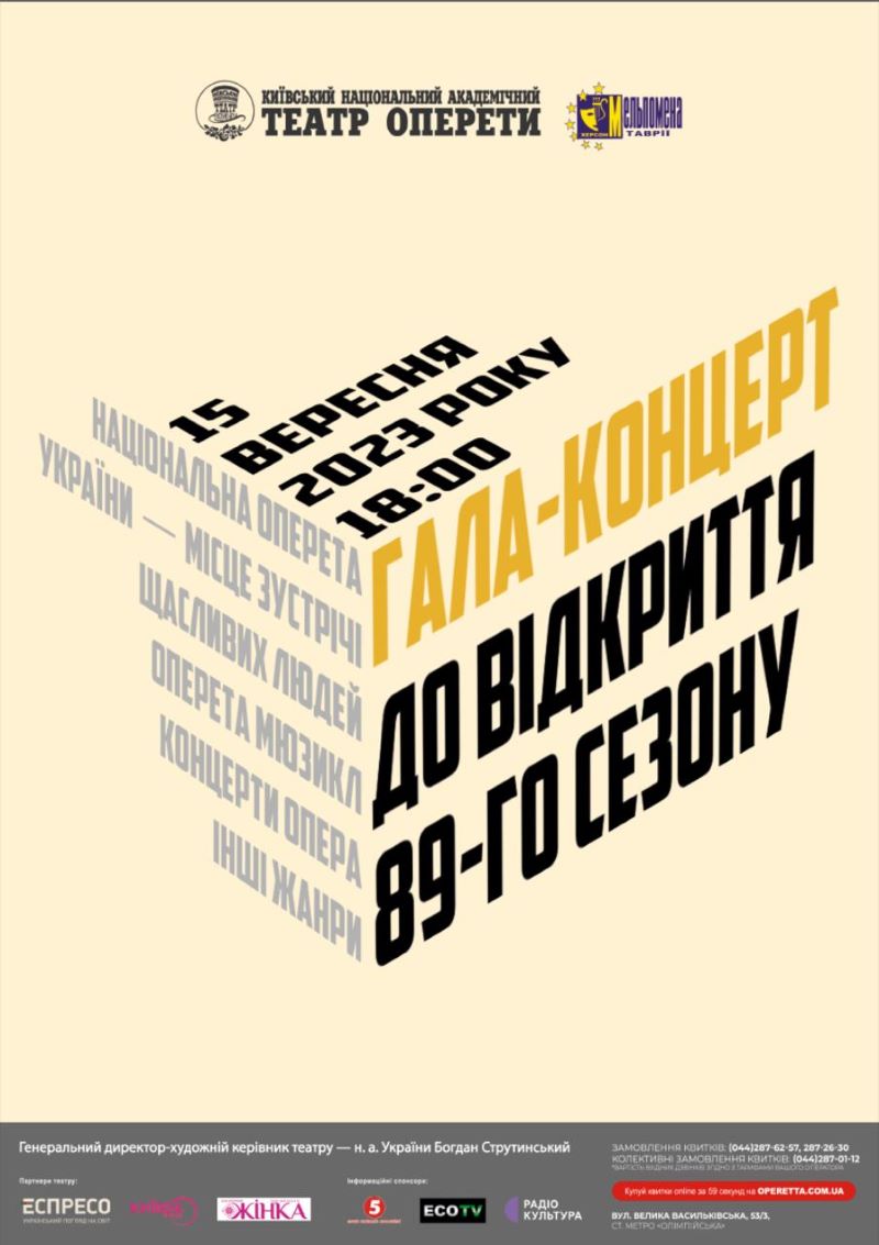 15 вересня гала -концертом Національна оперета України розпочне свій 89-й театральний сезон