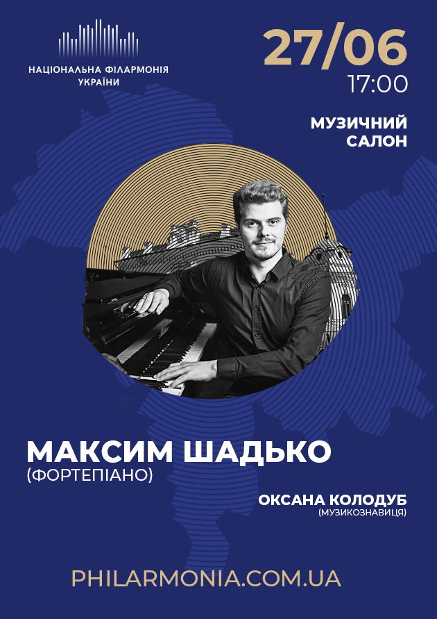 27 червня о 17:00 в Музичному салоні Колонного залу імені Миколи Лисенка відбудеться перший сольний концерт Максима Шадька