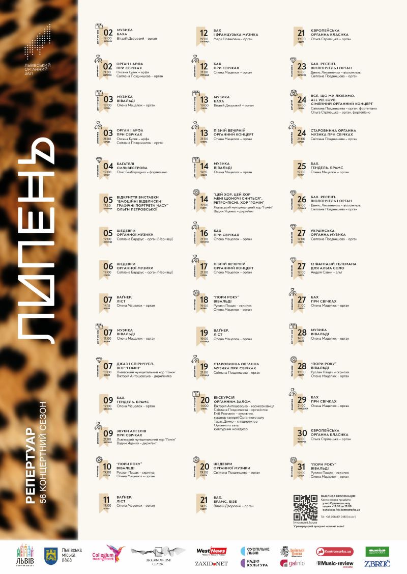 Ну і звичайно, як завжди в Органному – багато органних концертів солістів: Олени Мацелюх, Світлани Позднишевої, Ольги Стрілецької, Марка Новаковича, Віталія Доворового.