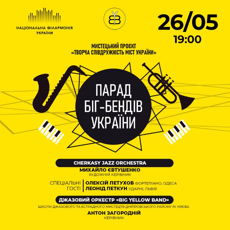 26 травня у філармонії вперше з початку широкомасштабного вторгнення знакова джазова подія присвячена Дню Києва – V Парад біг-бендів України.