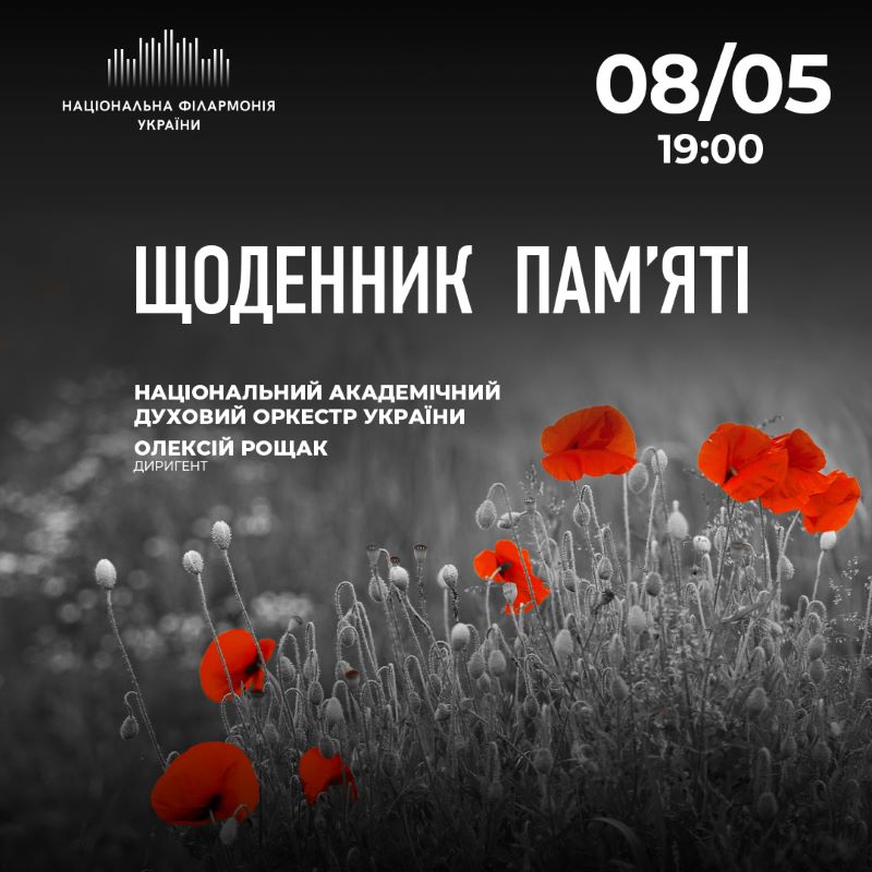 8 травня Національний духовий оркестр України під управління диригента Олексія Рощака презентує нову програму «Щоденник пам'яті», якою прагне вшанувати полеглих та постраждалих як Другої світової війни, так і сучасної.