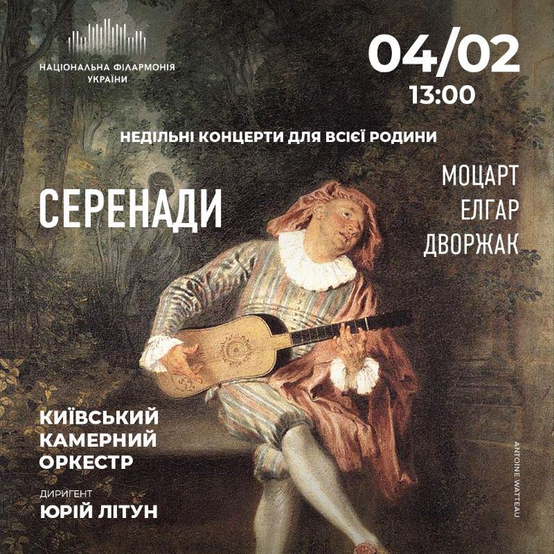 4 лютого о 13:00 в серії «Недільних концертів для всієї родини» Київський камерний оркестр під орудою дириґента Юрія Літуна запропонує програму «Серенади»
