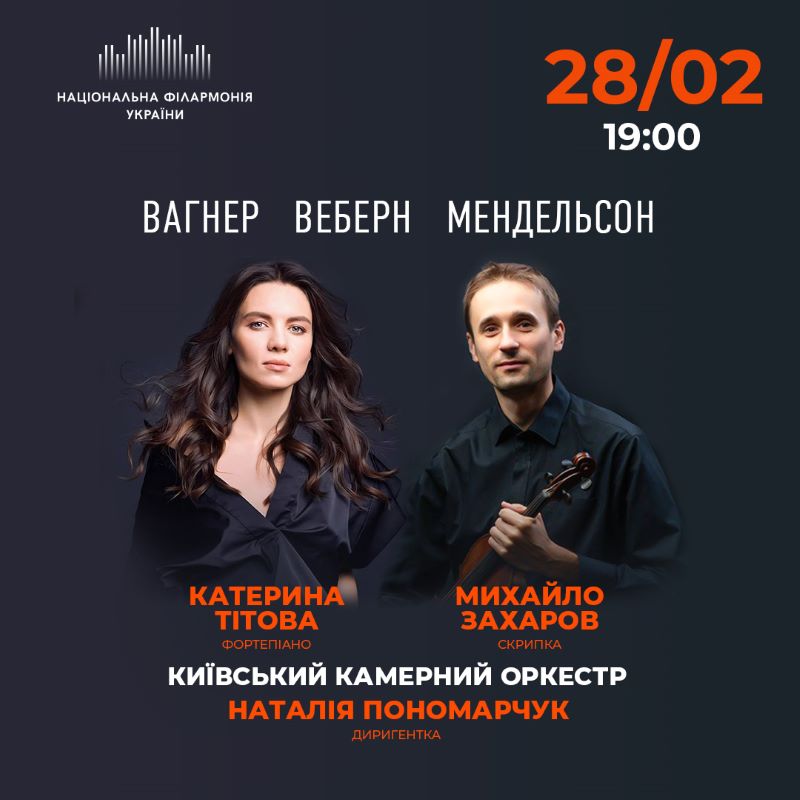 28 лютого програма за участю зіркових: піаністки Катерини Тітової, скрипаля Михайла Захарова і дириґентки Наталії Пономарчук, що презентує різні грані німецької музики: від традицій романтизму до експериментальної нововіденської школи.