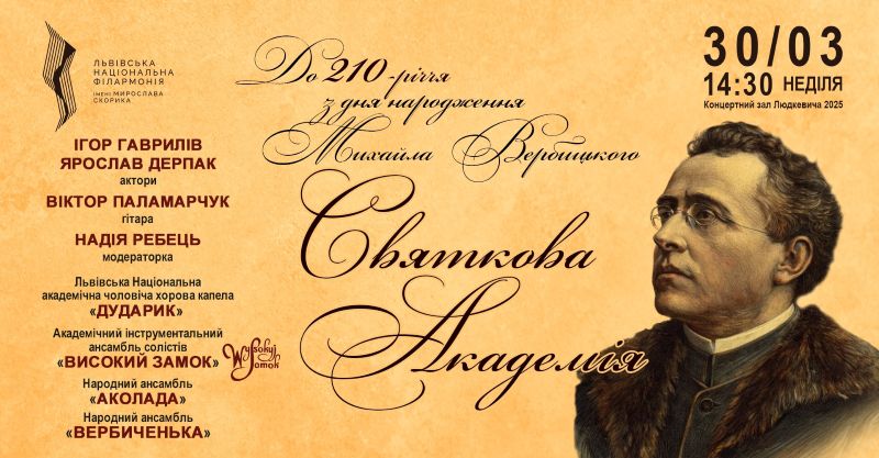 програма, присвячена до 210-річчя з дня народження Михайла Вербицького, яку презентують 30 березня у Львівській національній філармонії