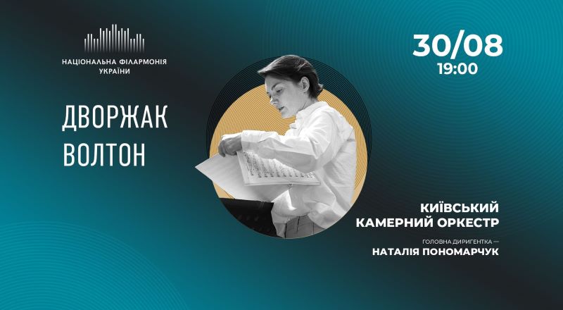 30 серпня Київський камерний оркестр під орудою головної диригентки Наталії Пономарчук представить програму з творів чеського класика Антоніна Дворжака та англійського композитора ХХ століття Вільяма Волтона