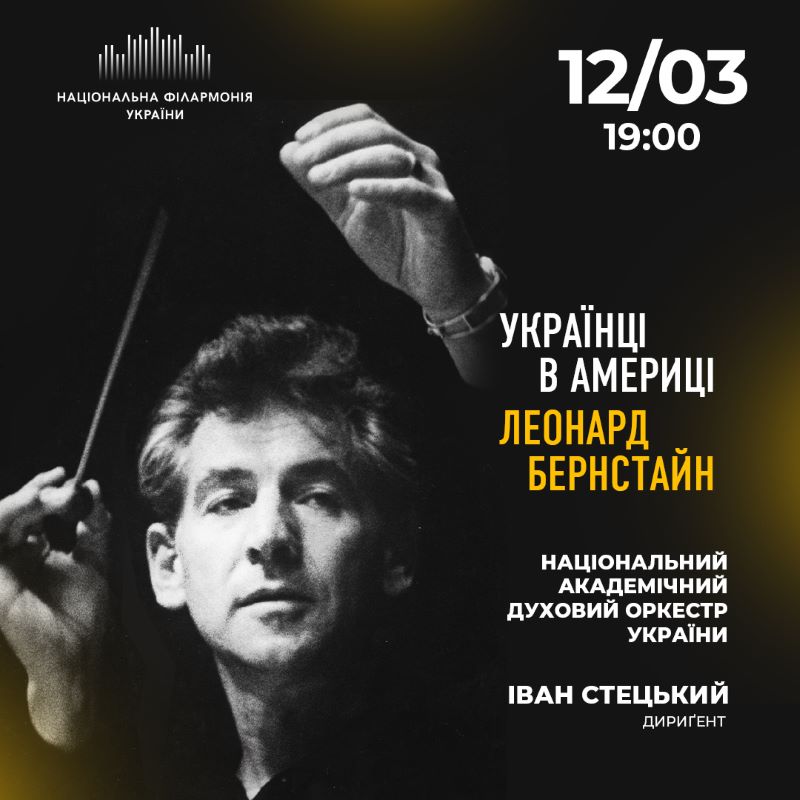 12 березня Національний духовий оркестр України виконанням творів Леонарда Бернстайна відкриє цикл «Українці в Америці», присвячений видатним музикантам українського походження, які втілили «американську мрію». Ідея належить диригенту Івану Стецькому.