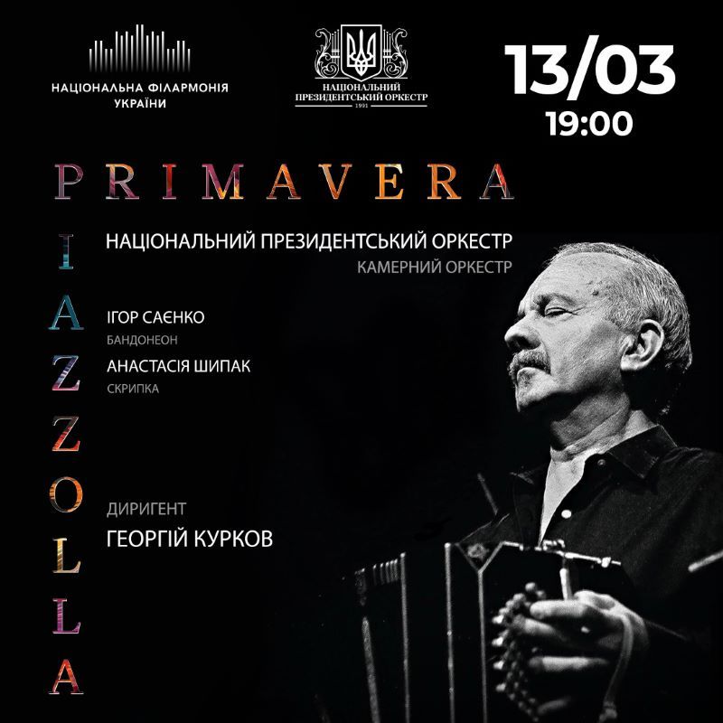 13 березня день народження Астора Пʼяццолли Національний президентський оркестр під орудою диригента Георгія Куркова пропонує відзначити програмою «PIAZZOLLA. PRIMAVERA»