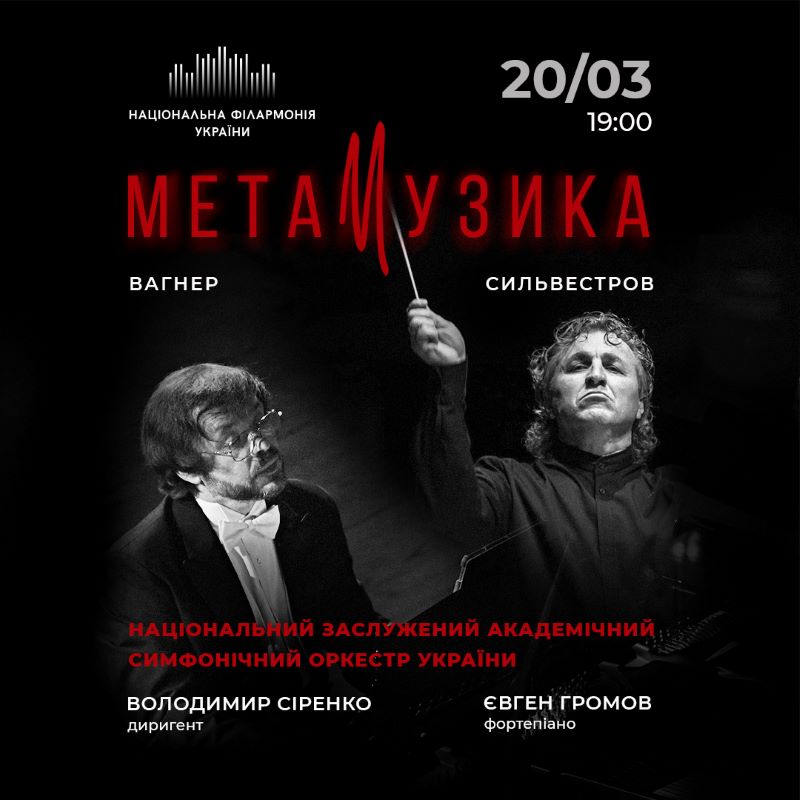 20 березня концерт Національного академічного симфонічного оркестру України під орудою маестро Володимира Сіренка «Метамузика: Вагнер / Сильвестров» – доволі оригінально поєднає твори цих двох композиторів в одному вечорі. Солюватиме улюбленець публіки – піаніст Євген Громов.