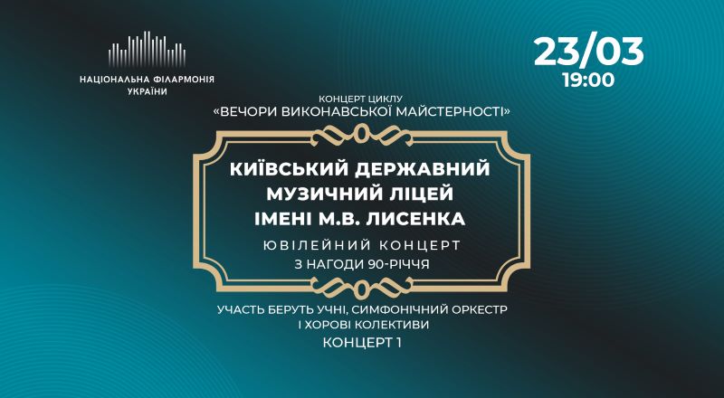 Тож, 16 березня о 13:00 свою 50-ту річницю від дня заснування відзначить Дитяча школа мистецтв № 5 Оболонського району Києва. 23 (19:00) і 24 березня (14:00) аж двома концертами вихованцями Київського державного музичного ліцею імені Миколи Лисенка, який ще називають «десятирічкою», що святкуватиме свої 90 років «Вечорами виконавської майстерності».