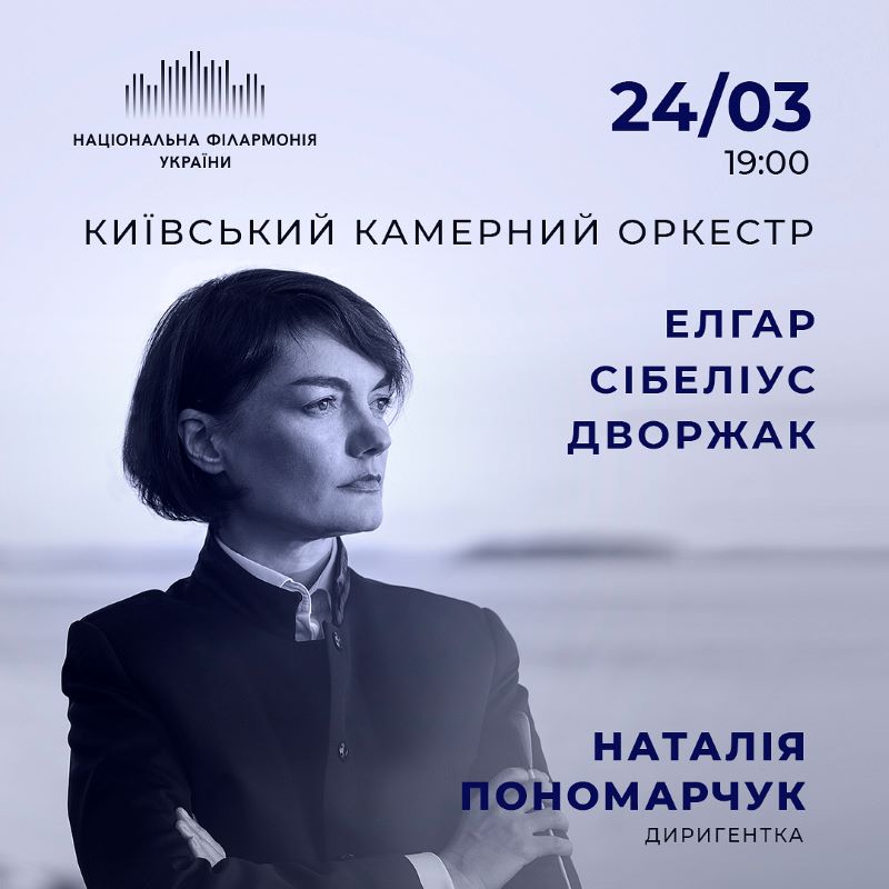 24 березня Витончена камерна програма з творів композиторів XIX-XX століть під орудою Наталії Пономарчук представить лірику в її найрізноманітніших проявах. Обрамляють її романтичні Серенади для струнних англійця Едварда Елгара та чеського композитора Антоніна Дворжака. Серцевиною програми стане «Любовна сюїта» (Rakastava) фінського романтика Яна Сібеліуса, в якій до струнного Київського камерного оркестру доєднаються ударні інструменти – літаври та трикутник.