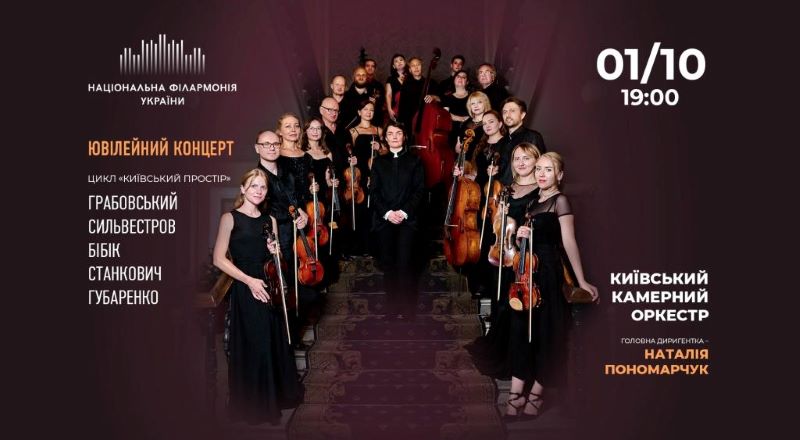 У ювілейному концерті циклу «Київський простір», присвяченому 60-річчю Київського камерного оркестру, за концепцією нинішньої головної диригентки цього колективу Наталії Пономарчук, звучатимуть твори, які складали музичний простір Києва на час заснування й становлення оркестру: Маленька камерна музика № 1 для струнних Леоніда Грабовського, Серенада для струнного оркестру Валентина Сильвестрова, «Сім мініатюр» для струнних Валентина Бібіка, Симфонія № 4 «Sinfonia Lirica» для струнних Євгена Станковича та Concerto grosso для струнного оркестру Віталія Губаренка.