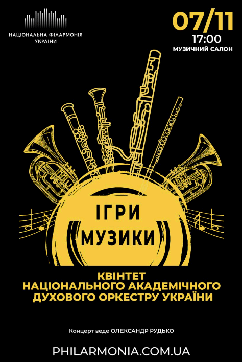 Камерний концерт «Ігри музики» у виконанні нової творчої формації – квінтету Національного академічного духового оркестру.