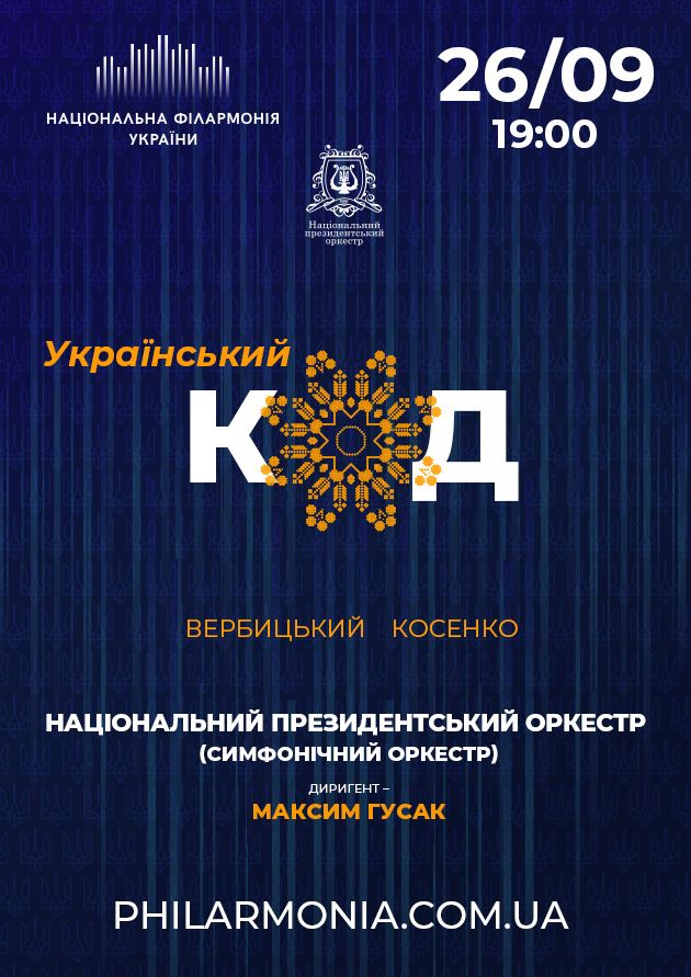 26 вересня у Національній філармонії відбудеться концерт «УКРАЇНСЬКИЙ КОД».