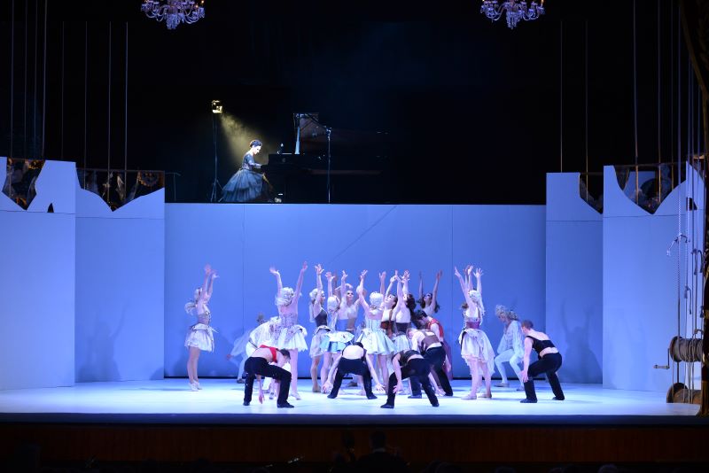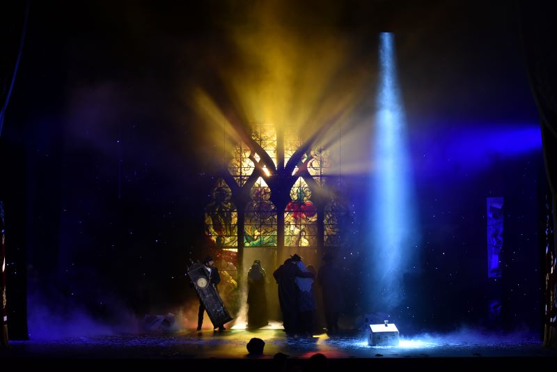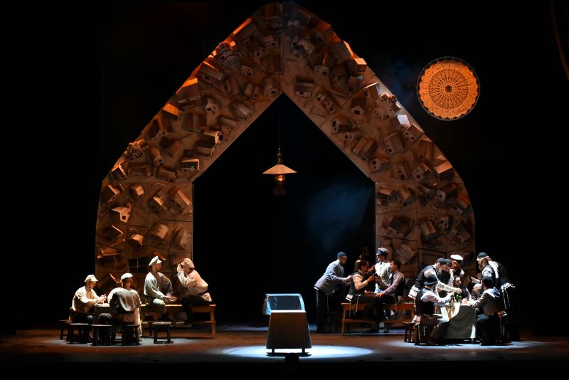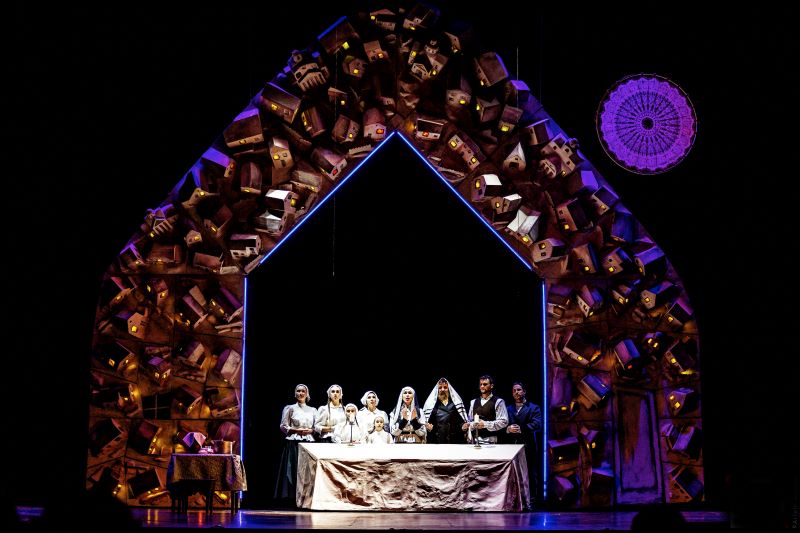 Ця історія з точки зору сценографії - це тунель, в якому їде потяг, потяг який їде на тебе. Цей момент є у виставі, коли потяг зависає над оркестровою ямою. А потім він трансформується у вагон, в який завантажують людей і відвозять. Цей вагон, з одного боку, місце події - сільська хата, вагон-ресторан, в'язниця. З іншого боку, це образ потягу, який летить в безодню часу, історії. Вийшов дуже потужний динамічний енергетичний образ, як і музика у виставі - надпотужна.