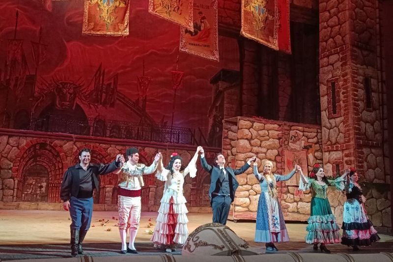 У виставі натхненно і злагоджено співали яскраві зірки Національної опери України: Ірина Петрова (Кармен), Олег Злакоман (Хозе), Геннадій Ващенко (Ескамільо), Ксенія Бахрітдінова-Кравчук (Мікаела), Дмитро Агеєв (Цуніга), Оксана Крамарєва (Мерседес), Світлана Годлевська (Фраскіта), Сергій Пащук (Ремендадо), Олександр Бойко (Данкайро), Михайло Кірішев (Моралес).