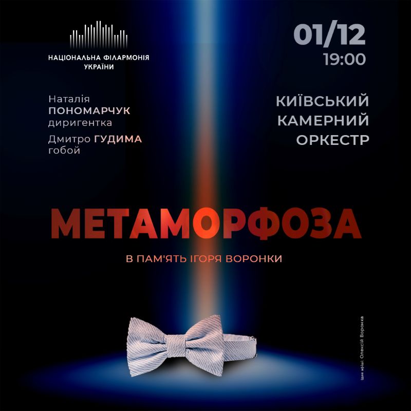 1 грудня "Метаморфоза" від Київського камерного оркестру в пам'ять про оперного співака, скрипаля, актора, військовослужбовця ЗСУ Ігоря Воронки