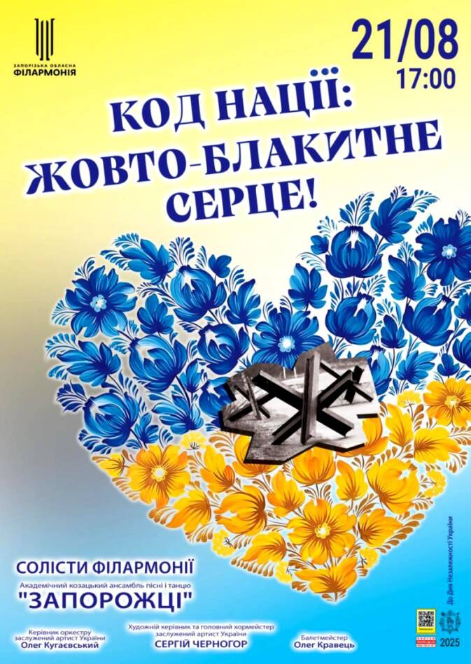 Мелодії свободи нескореної країни прозвучать на сцені Запорізької обласної філармонії 21 серпня.