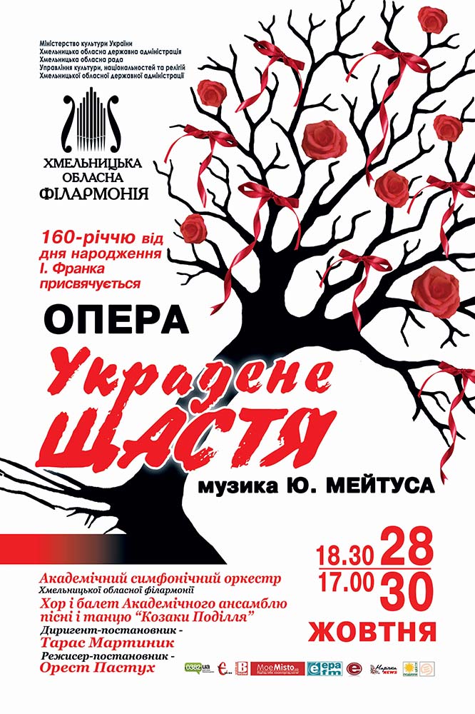 Однією з найяскравіших імпрез концертного сезону стане масштабний мистецький проект, приурочений 160-й річниці від дня народження Івана Франка. Після успішних постановок національних опер «Запорожець за Дунаєм» С. Гулака-Артемовського та «Назар Стодоля» К. Данькевича, сцена Хмельницької обласної філармонії знову перетвориться на майданчик захоплюючого музично-драматургічного дійства у прем’єрі опери Юлія Мейтуса «Украдене щастя» за однойменною драмою І. Франка.