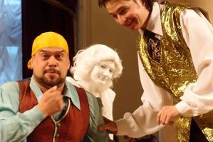 У постановці Ю. Журавкової весь режисерський інструментарій було підкорено тому, щоб у калейдоскопі численних мізансцен опери Россіні ані на мить не збавлявся стрімкий темпоритм дійства, щоб у публіки не вщухав інтерес до того, що відбувається на сцені. Замішана сценічна інтрига підігрівала градус спектаклю сценографічними знахідками, ремінісценціями: парою янголят (або Амура та Психеї) на балконі над сценою, що весь час кумедною мімікою посилювали іронічну тональність дійства; час від часу елегантно-пластична зміна пози «оживаючої» скульптури фонтана з амфорою у центрі сцени, використання для розвитку сценічної дії усього простору залу тощо. Та, звісно, основне музично-драматургічне навантаження несли головні герої — Софія (А. Родіна), Гауденціо (А. Юрченко), Маріанна (О. Табуліна), Філіберто (Р. Смоляр), Комісар (О. Харламов), молодий і старший Брускіно (С. Бортник і А. Маслаков), які продемонстрували темперамент, вокальну майстерність, виразну артикуляцію, що була абсолютно досконалою й у технічно віртуозних сольних номерах, і в ансамблях. Особливо вражали скоромовки — справжні перлинки бельканто. Абсолютним центром уваги слухачів став Брускіно-старший у виконанні чудового соліста Національної опери Андрія Маслакова, інтонаційна палітра партії якого підкоряла швидкою зміною настроїв і реакцій на репліки партнерів по сцені.