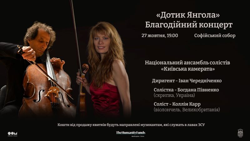 В концерті візьме участь зірковий соліст - британський віолончеліст Коллін Карр, який виступає з найкращими світовими оркестрами і диригентами. Всесвітньо відомий музикант приїде до України з благодійною метою – виступити у дитячій спеціалізованій лікарні ОХМАТДИТ, а також дати благодійний концерт з Київською камератою.