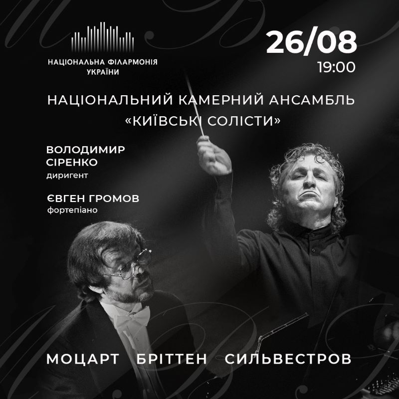 Легкість і простота — саме такою є програма Національного камерного ансамблю «Київські солісти» 26 серпня. Цікаво, що в цей день ансамблем диригуватиме маестро Володимир Сіренко, за партію соло відповідатиме піаніст Євген Громов. Зальцбурзька симфонія №3 Моцарта відрізняється стрімкістю та легкістю фактури — а разом із тим жвавістю музичної думки, властивої для юного композитора у його 16 років. Проста симфонія Бріттена не є простою для виконання, а радше щирим та безпосереднім музичним висловлюванням, адже Бріттен узяв за її основу свої дитячі твори, написані у віці 9–12 років. Що характерно, що композитор послуговується у цьому творі класичною музичною мовою часів Моцарта. Збалансує молодечий запал тиха музика Сильвестрова. Її простота — у знайомих гармоніях, наспівних мелодіях, мʼякому звучанню струнних. Ніби щира розмова двох давніх знайомих — музиканта та слухача.