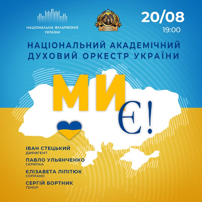 20 серпня концерт Національного духового оркестру України з життєствердною назвою «МИ Є!»! під орудою диригента Івана Стецького та за участю солістів: Павла Ульянченка, скрипка; Єлізавети Ліпітюк, сопрано та Сергія Бортника, тенор.