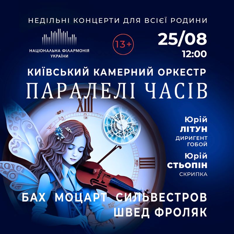 25 серпня в межах програми Недільні концерти для всієї родини – виступ Київського камерного оркестру, диригуватиме та солюватиме гобоїст Юрій Літун. Серед солістів також Юрій Стьопін, скрипка. Програма цього недільного концерту побудована на творах різних стилів: бароко, класицизм, нова простота та — неочікувано — рокмузика. Вишуканість та обʼєм музики Баха переміниться стрімкою і політною симфонією Моцарта, а після — хвиля української музики. Тут слухача очікують прості та щемкі мелодії Сильвестрова, щільність звукових сплетінь у музиці Шведа та драйвові пісні з репертуару улюбленого “Океану Ельзи” у перекладенні для струнних Фроляк. Справжній сплеск музичного різноманіття в одному концерті!